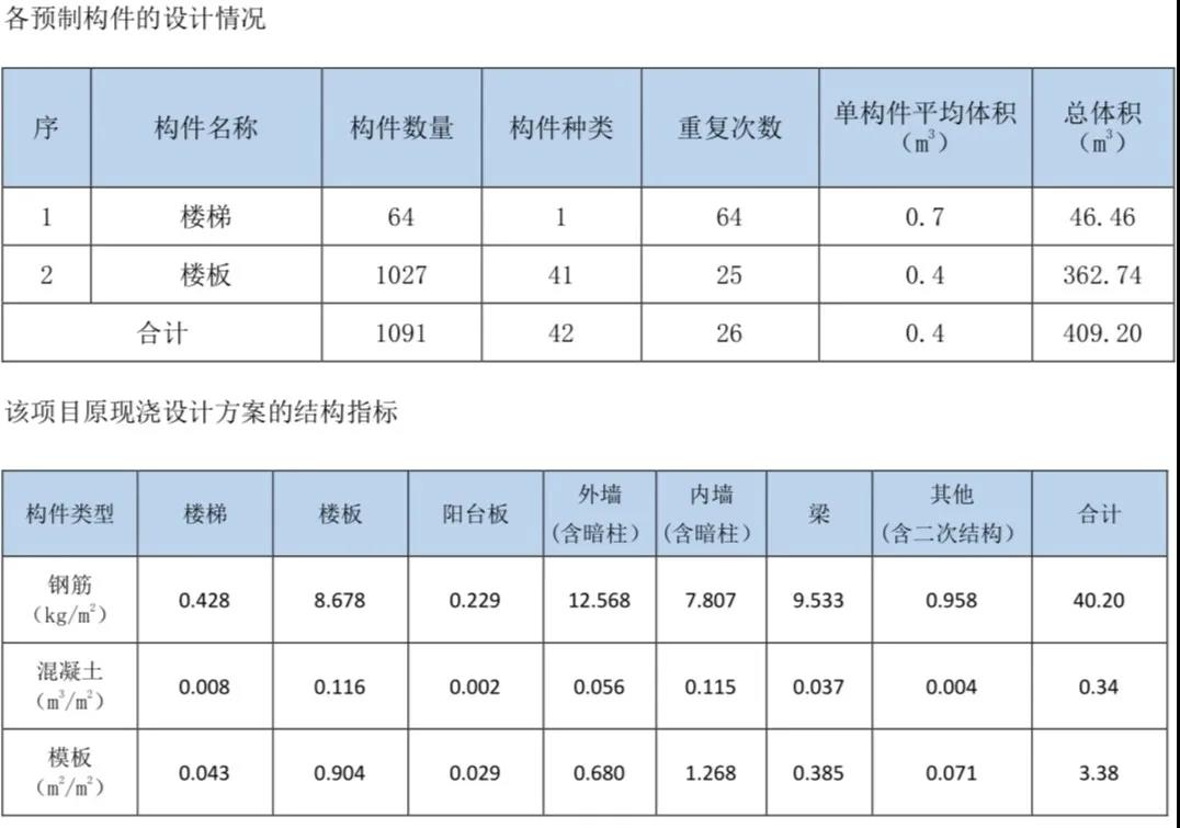 ④預(yù)制構(gòu)件混凝土及鋼筋含量。